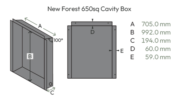 The cavity box provides a solution when installing into a cavity of the wall, or into an existing chimney. It blocks off the opening to the any air flow and provides the the depth for a 75mm rebate on a fireplace.